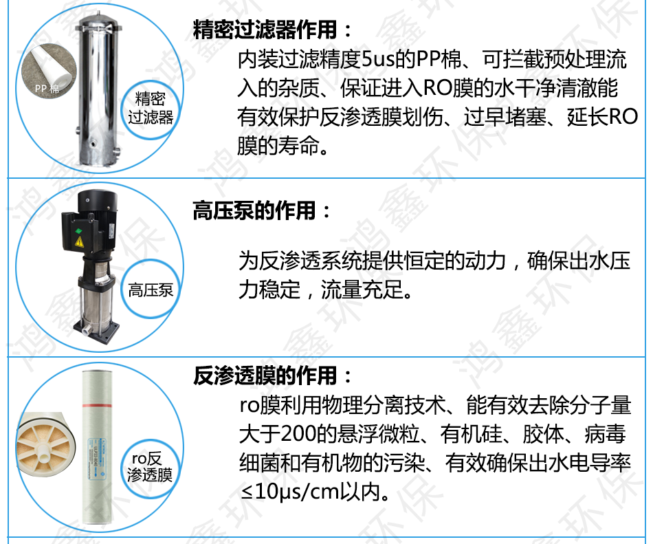 鸿鑫环保专业定制:市政生活用水处理设备、直饮纯净水设备超滤水处理设备、ro反渗透纯水设备,离子交换纯水设备、EDI超纯水设备、软化水处理设备、RO浓水回收设备、中水回用设备。