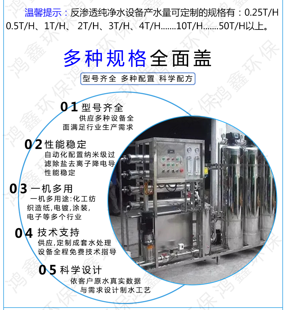 鸿鑫环保专业定制:市政生活用水处理设备、直饮纯净水设备超滤水处理设备、ro反渗透纯水设备,离子交换纯水设备、EDI超纯水设备、软化水处理设备、RO浓水回收设备、中水回用设备。