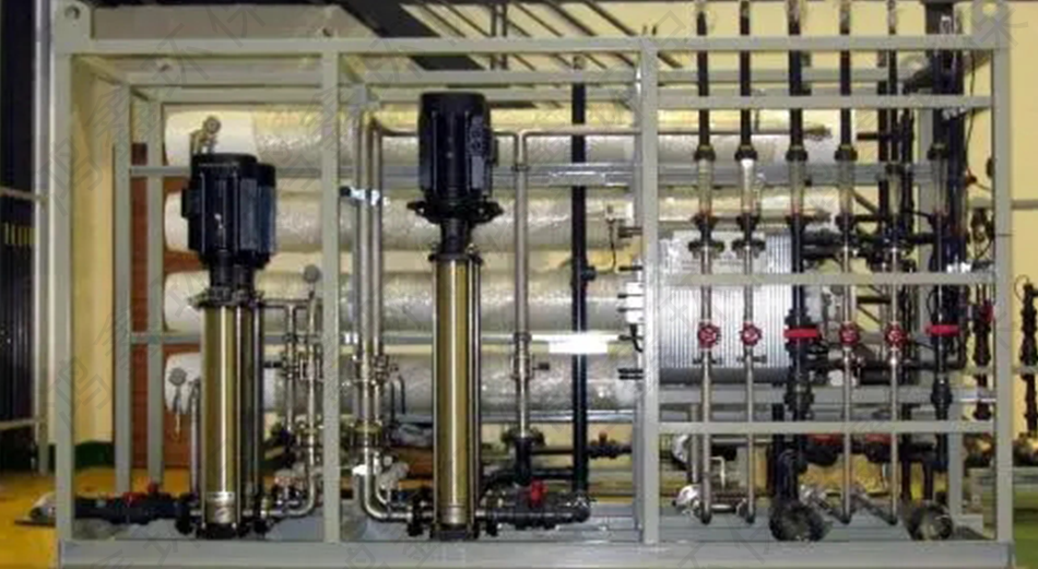 双级反渗透超纯水设备电际率≤5us/cm的制水工艺: 原水箱+原水泵+石英砂过滤器+活性炭过滤器+双级反渗透系统+超纯水箱。