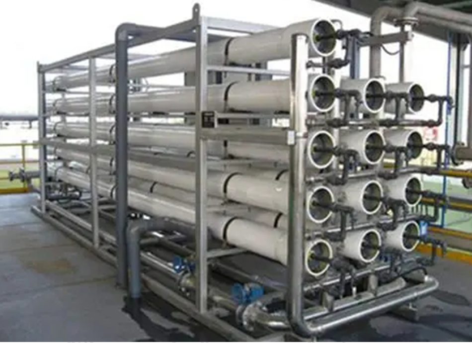 反渗透水处理系统是一种膜分离技术,反渗透膜的孔径与水分子基本一致,只有与水分子大小相仿的粒子能够通过,其他粒子或杂质被分离出去,从而得到纯水。