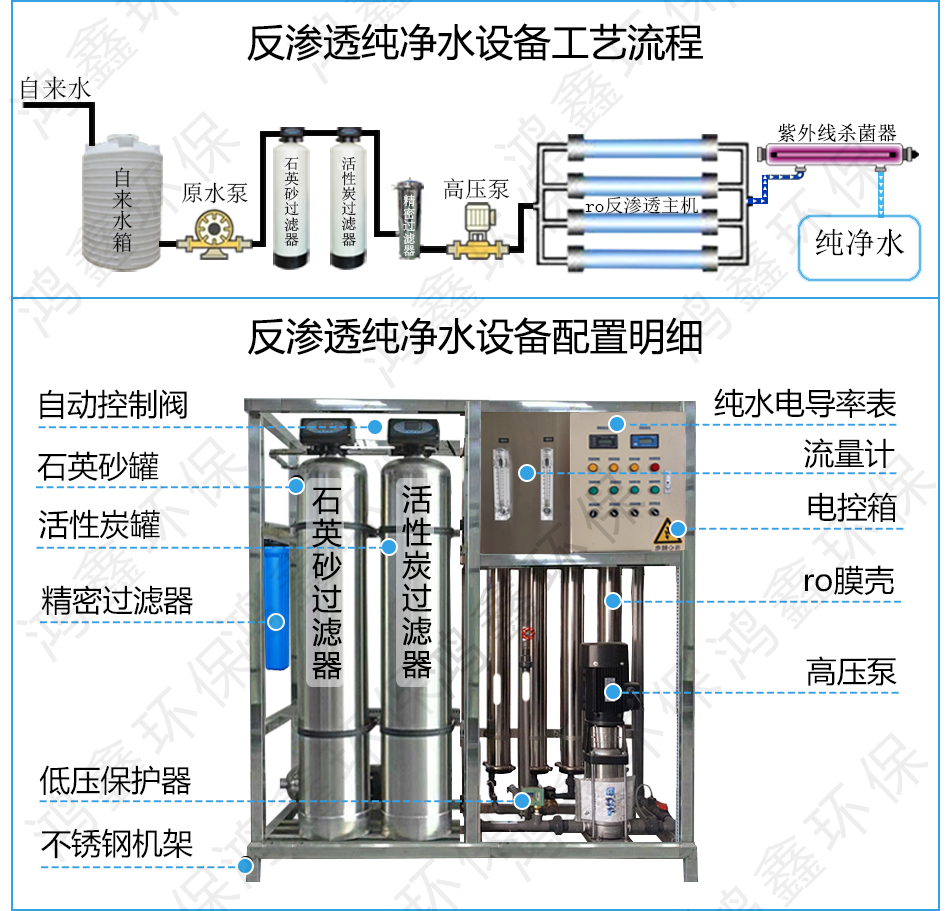 如需了解更多反渗透纯净水设备及其它水处理设备的配置可致电鸿鑫环保科技的孙先生13725745934(微信同号),我们会依据您原水水质设计出符合您切实用水的水处理设配置方案,我们不能说我们是做的最好,但最起码能给到您实用的设计方案,设计出的方能案解决您真实用水需求这是最关键的。