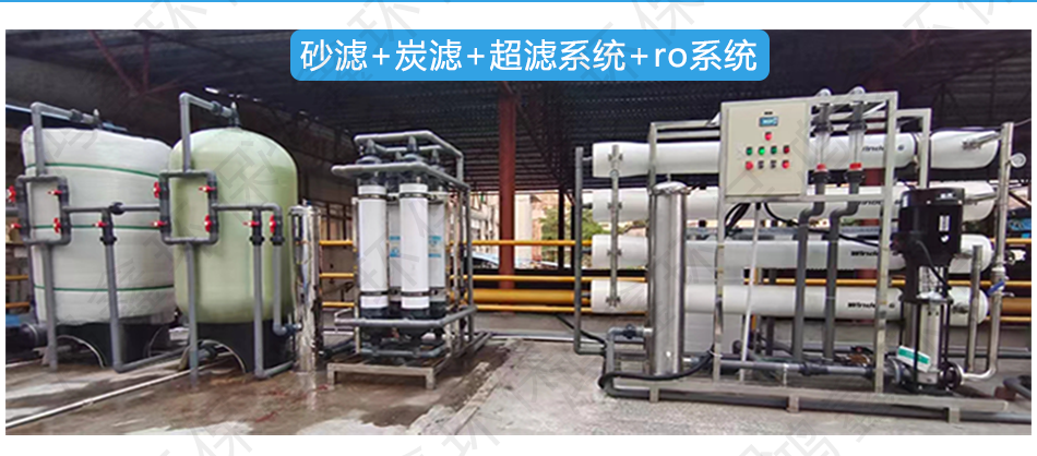 2:自来水→原水泵→砂滤器→碳滤器→ro反渗透系统→纯水
