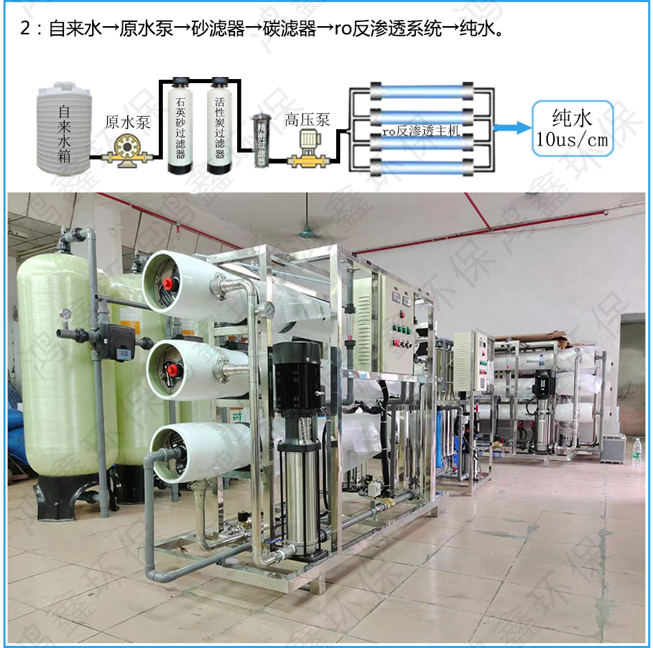 2:自来水→原水泵→砂滤器→碳滤器→ro反渗透系统→纯水。